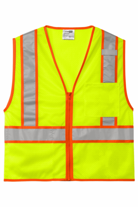 $22.00The Men’s ANSI 107 Class 2 Mesh Zippered Two-Tone Vest delivers high visibility, comfort, and function for the job site. Made from lightweight, breathable polyester mesh, it features durable reflective 2-inch tape with contrasting fabric underneath for added visibility in low-light conditions. A zippered front closure, chest pocket, interior storage pocket, and mic clip keep essentials close at hand. Designed for safety and ease of wear, this vest provides 360-degree reflectivity and must be fully zipped to meet ANSI 107 standards.